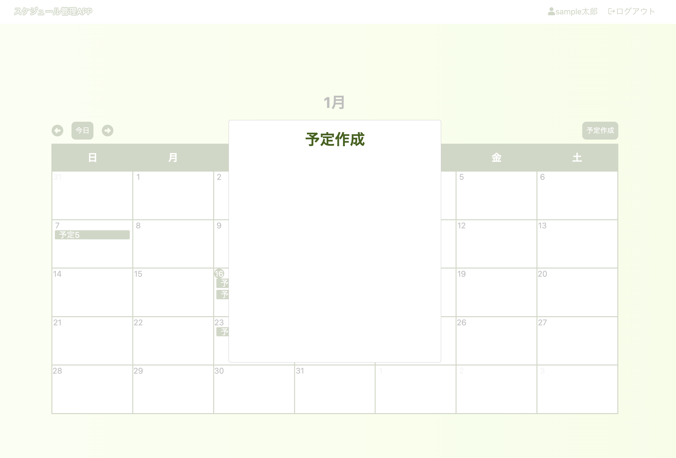 これで`予定作成`というボタンを押した際に、モーダルが表示されるようになったかと思います。