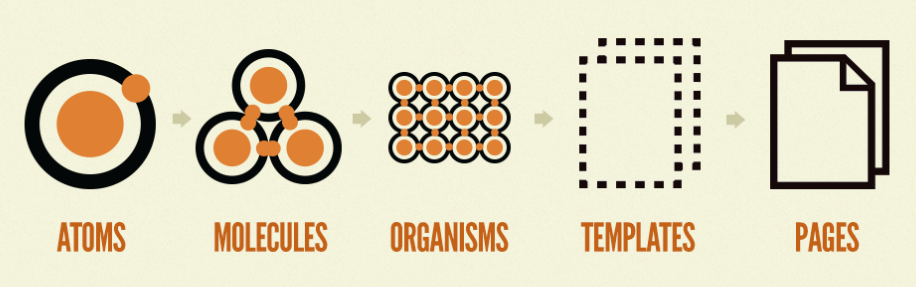 **Atomic Design**は、コンポーネントの粒度に応じて、5つのディレクトリに分けて取り扱っていく設計手法になります。分けるディレクトリ名は決まっており、小さい順から