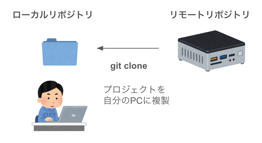 まずプロジェクトに途中から参加した場合、そのプロジェクトをGithubから**clone(複製)**&#x3057;ます。