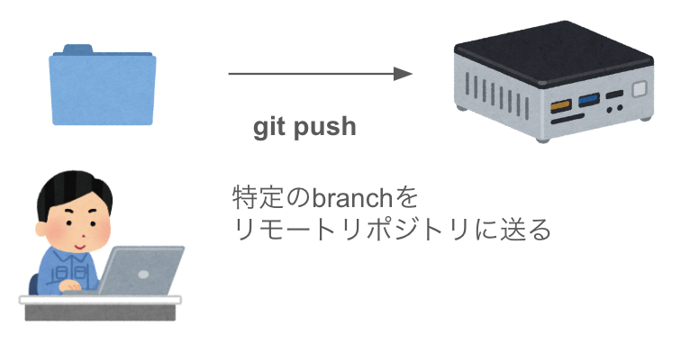 その後branchを切ってcommitを積んでいき、開発が終わったら**push(ローカルリポジトリの特定のbranchをリモートリポジトリに送る)**&#x3057;ます。**push**は**branch単位**で送るので**大元のbranch**を編集して**push**さえしなければ、リモートリポジトリのソースコードが汚れることはありません。