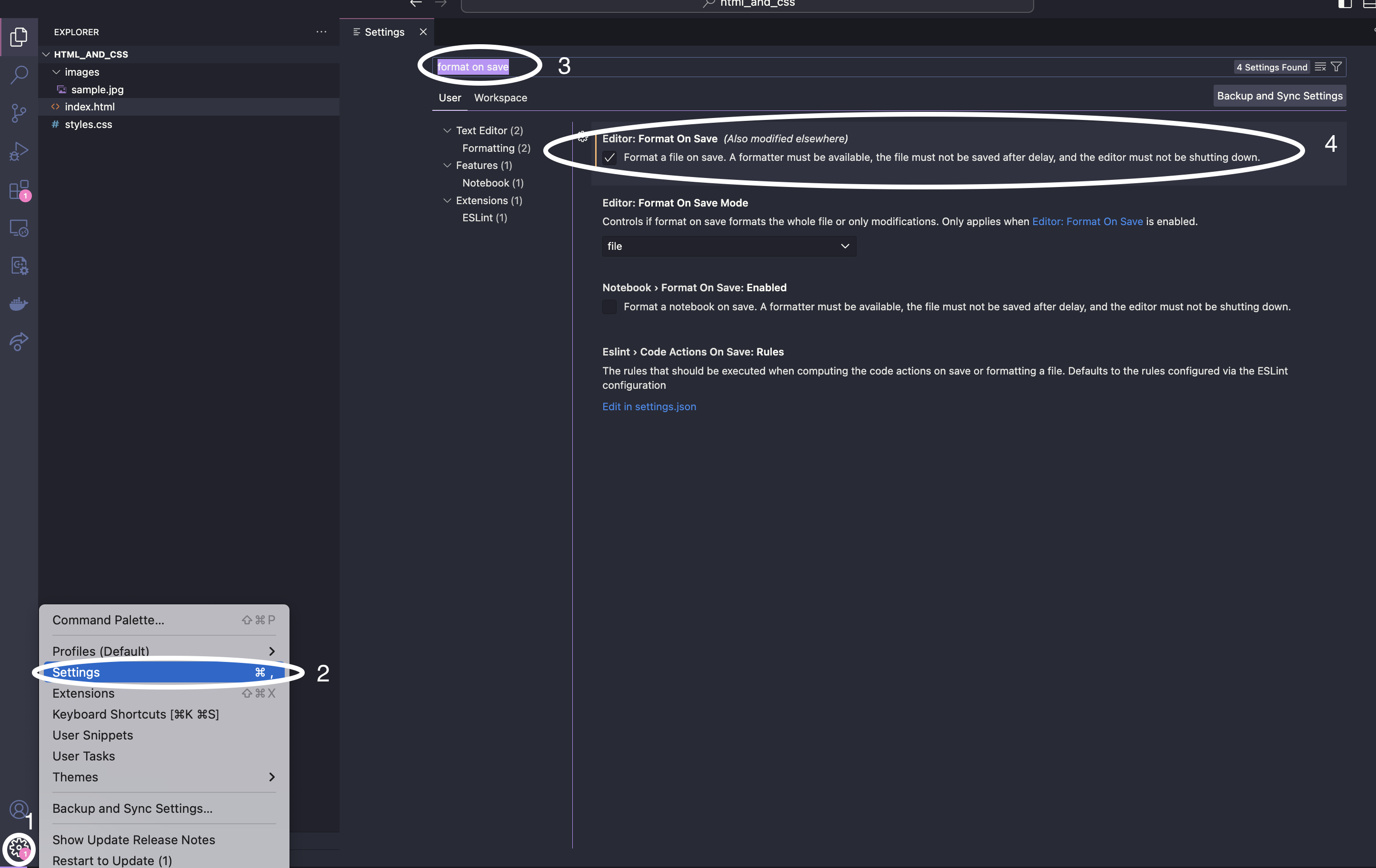 4. 下部に表示された「Editor: Format On Save」をチェック