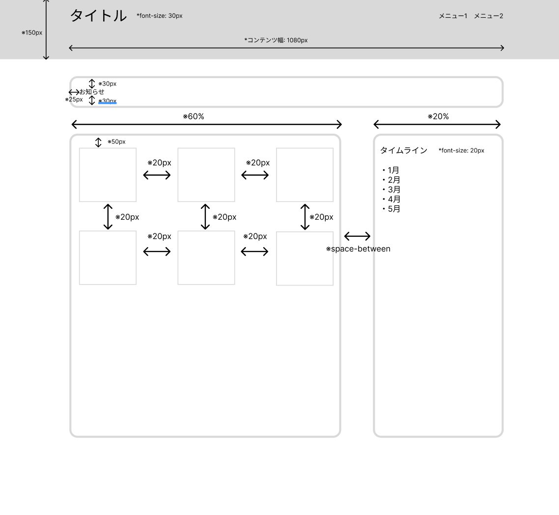 今まで学習した内容を元に、以下デザイン通りにページを作ってみましょう。